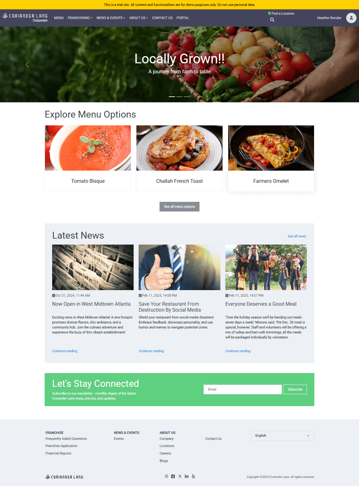 Coriander Lane is designed to showcase how Sitefinity powers engaging and intuitive experiences for both restaurant guests and franchise owners. The site is structured to provide a dynamic, feature-rich, and scalable solution for the food and hospitality industry.